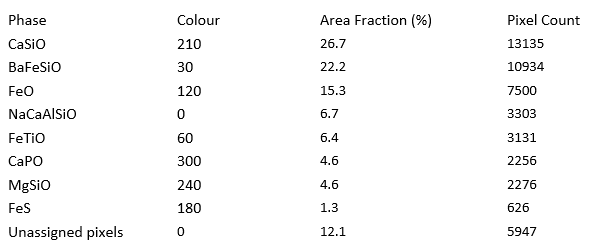 As this is a blog I won’t discuss the potential errors in each method in great detail. Our proposed method for using EDS to determine the bulk composition of multi-phase materials is clearly more complex and also comes with some potential errors that you may want to consider. For example, the densities are approximate based on an identification of the phase rather than the composition. You may have also spotted that I completely ignored over 10% of pixels that were not assigned by AutoPhaseMap. These are minor phases, pixels which have mixed composition from surrounding phases, and mostly alteration phases formed recently in the history of the rock. Should these be included, or not?