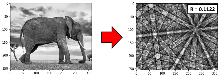 Indexing an elephant as Ni – the best fitting simulated pattern matches with a normalised cross correlation coefficient (R) of 0.1122.