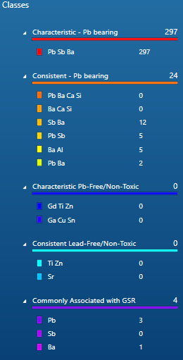 One of those key parameters is the classification scheme. This is perhaps one of the most visible elements of the ASTM E1588 standard. Each time a new version of the scheme is released, our application specialists work through it in forensic (pun intended) detail to understand how best to implement it in AZtecGSR - We provide recipes with the 2016, 2017 and, the recently released 2020 version of the standard for our users as part of the product.