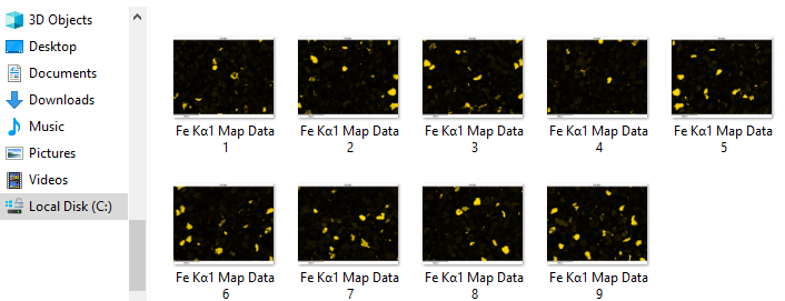 After the export is complete, you will see that element folders have been created in your destination folder. If you look in the Fe folder, you will see the Iron (Fe) maps from all the sites.