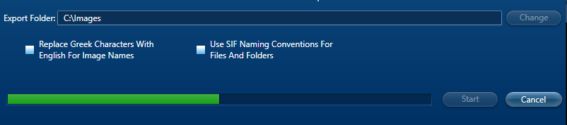 Once you’ve chosen the export folder, press start and watch the progression. When finished, there will be a message box telling you how many images were saved. Now when you look in the export folder, you will see all the electron images you requested.