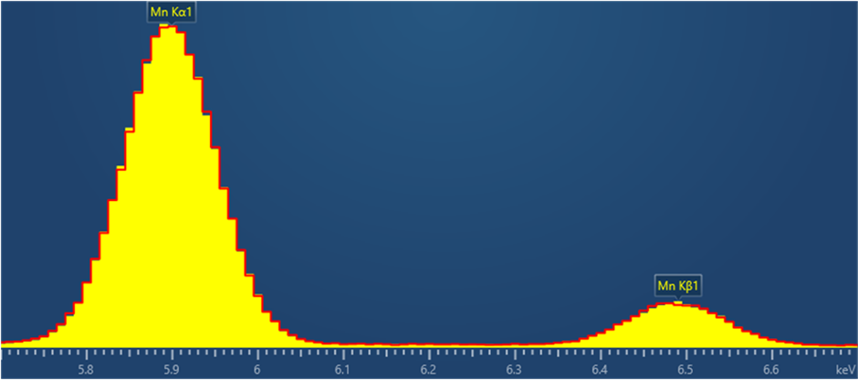 Let’s look at that by considering two EDS detectors with similar MnK resolution specifications. So similar in fact that their MnK peaks look almost identical, and the Kα and Kβ peaks are easily separated.