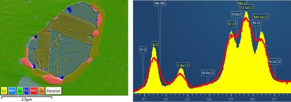 Take for example, this complex inclusion microstructure in a super-alloy, which was characterised at 3 kV due to its smallest structures being around 30 nm in size.