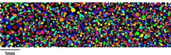 Figure 1: Automated large area analysis covering an area of 22mm2, showing the individual detected particles.