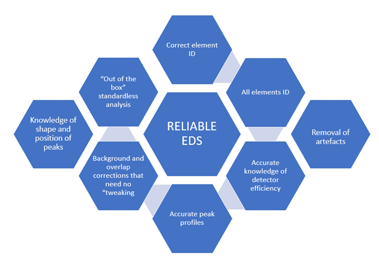 This has me thinking how would I explain it in a nice simple way; what are some of the new improvements with Infinity detectors? And then I thought, what if I start with everything that you have to consider in order to avoid bad results? From the graphic in Figure1, you will see how the whole EDS eco system is quite complex, and what I want to point out is if any of the things mentioned in the boxes are not working correctly, it could lead to bad or wrong results.