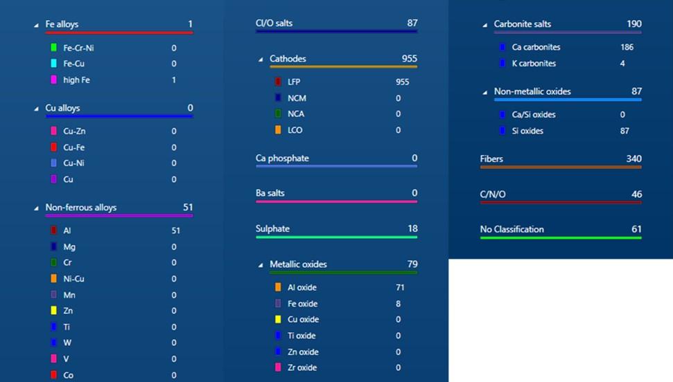 In the latest version of AZtec, the speed of analysis of identified particles has been improved significantly. This also applies to AZtecBattery, as it is built on the AZtecFeature platform. In addition, we have also updated the classification schemes for AZtecBattery to cover a wider range of materials used in the battery industry.