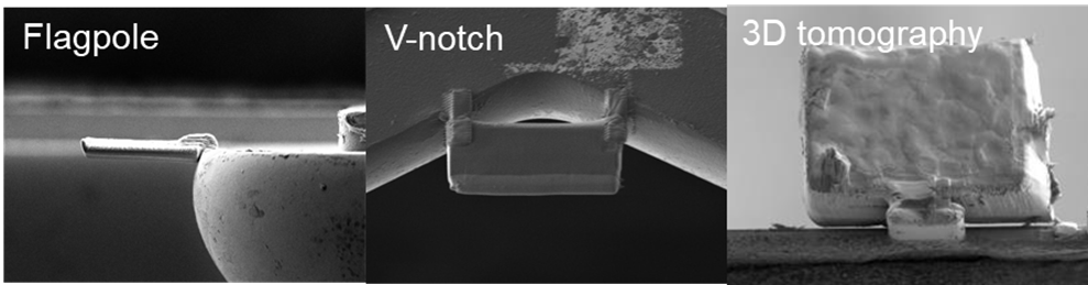 3. Tomography: welding to the top of a post or grid finger can be used for 3D (FIB and X-ray) tomography and atom probe tomography (APT).