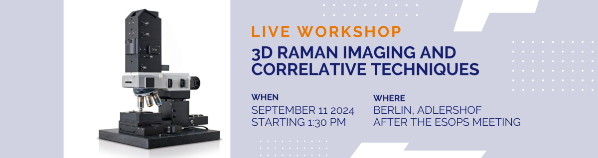 We cordially invite you to participate in the Workshop 3D Raman Imaging and Correlative Techniques – Advancing Comprehensive Sample Characterization.