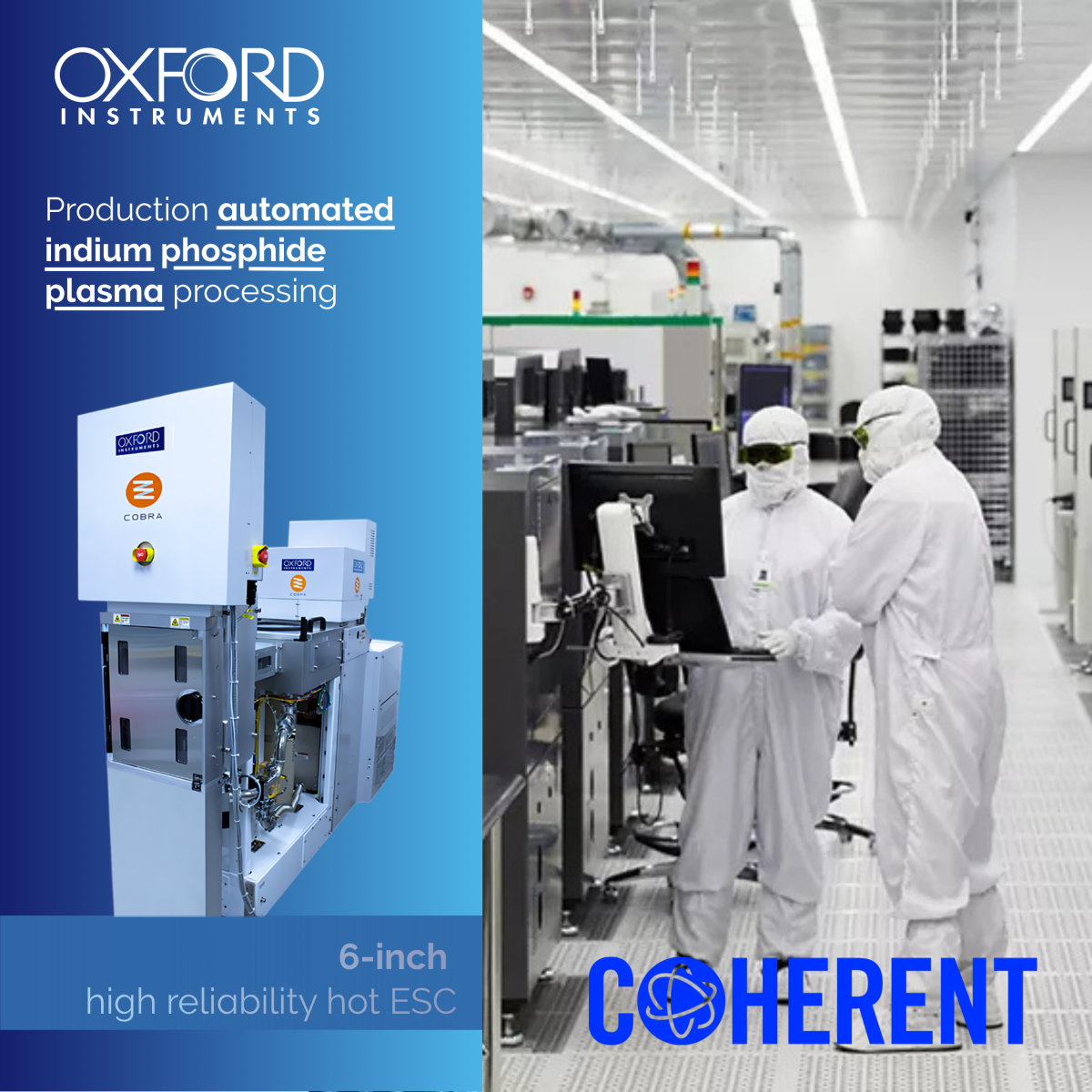 "Coherent’s move to 6-inch InP wafer fabrication marks a transformative milestone for the industry. Oxford Instruments’ expertise in plasma processing has been essential in enabling our Sherman and Järfälla fabs to reach world-class performance,” said Dr. Beck Mason, Executive Vice President – Semiconductor Devices at Coherent. “Together, we are advancing InP technology to support faster networks, greater efficiency, and the new applications that will define the future of connectivity."